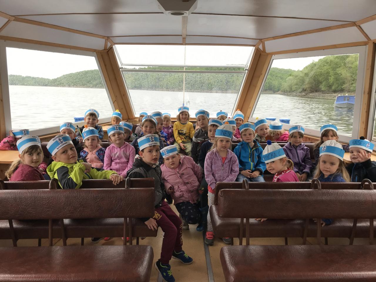 Na školním výletě jsme pluli lodí po Dalešické přehradě a děti hledaly poklad.