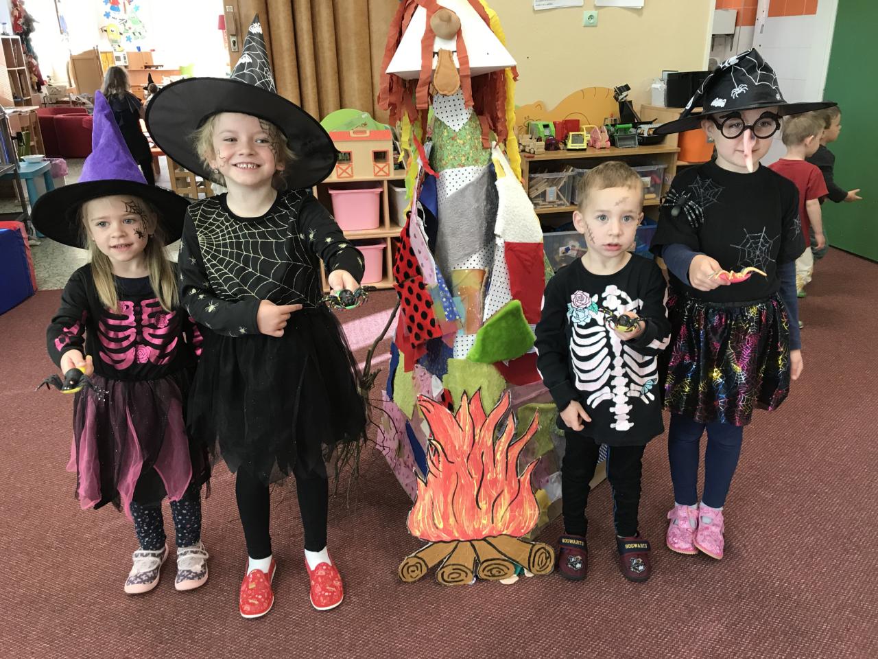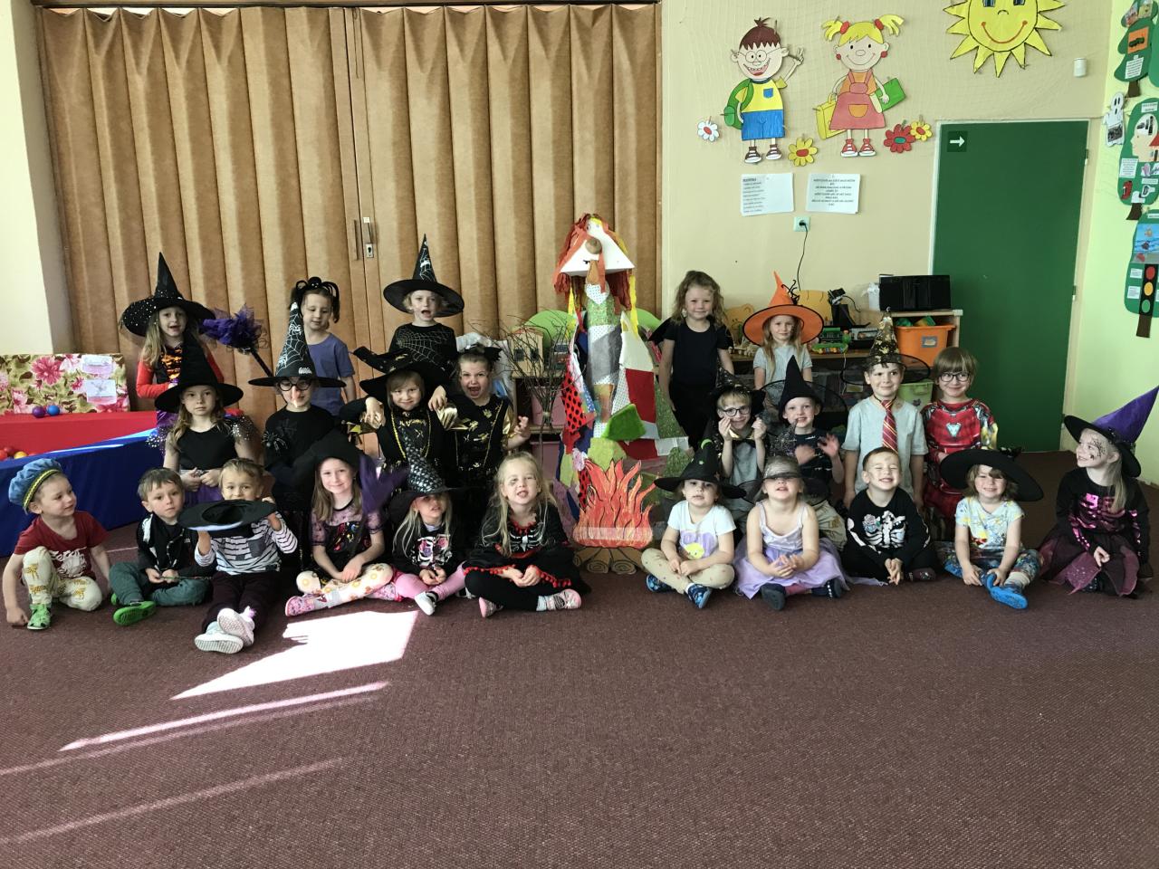 V úterý 30. dubna 2024 přišly děti do mateřské školy v čarodějnickém převleku a plnily úkoly školkové čarodějnice. Dokreslovaly své čarodějnici obličej, obcházely čarodějnici s pavoukem na lžíci, házely šipky na čarodějnický terč, prolézaly pavučinou, běhaly slalom s košťátkem atd.