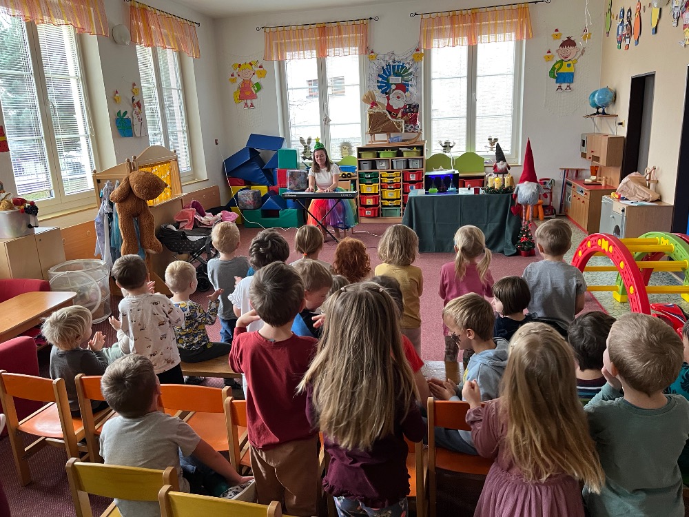 V pondělí 1. prosince 2025 proběhlo v mateřské škole hudební interaktivní představení pro děti. Pokusy i písničky se dětem moc líbily.
