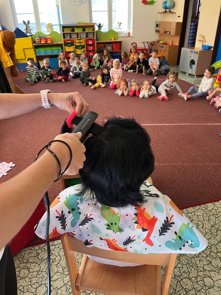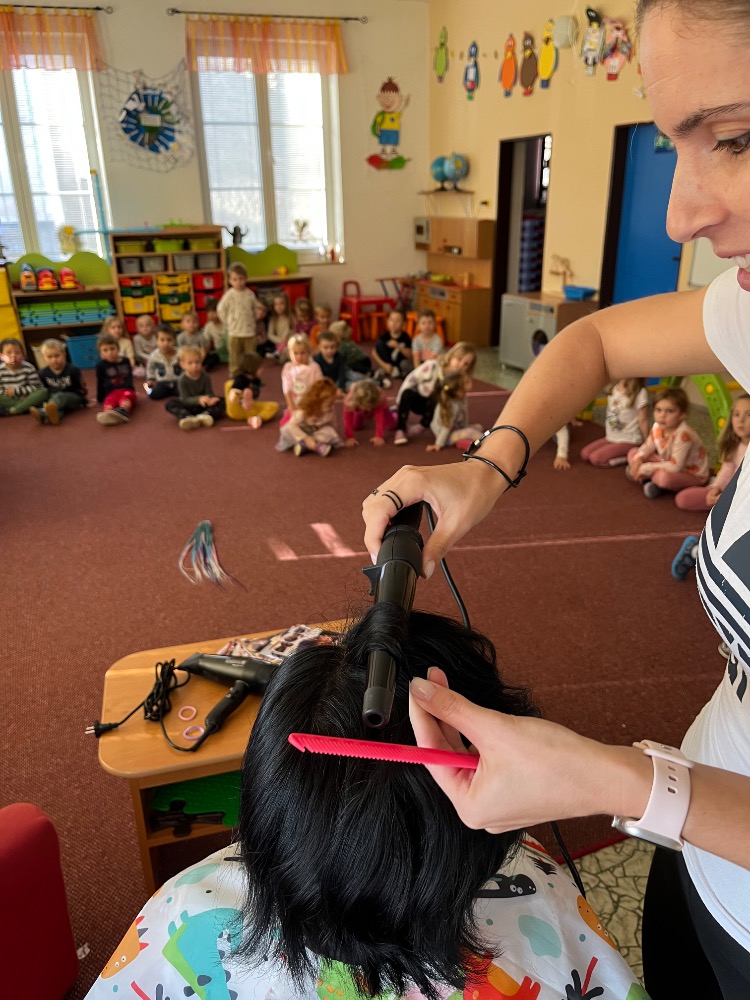 Děti se také seznámily s prací kadeřnice, s používáním kadeřnických pomůcek při práci.