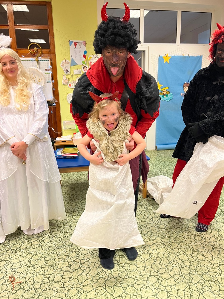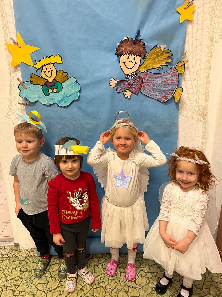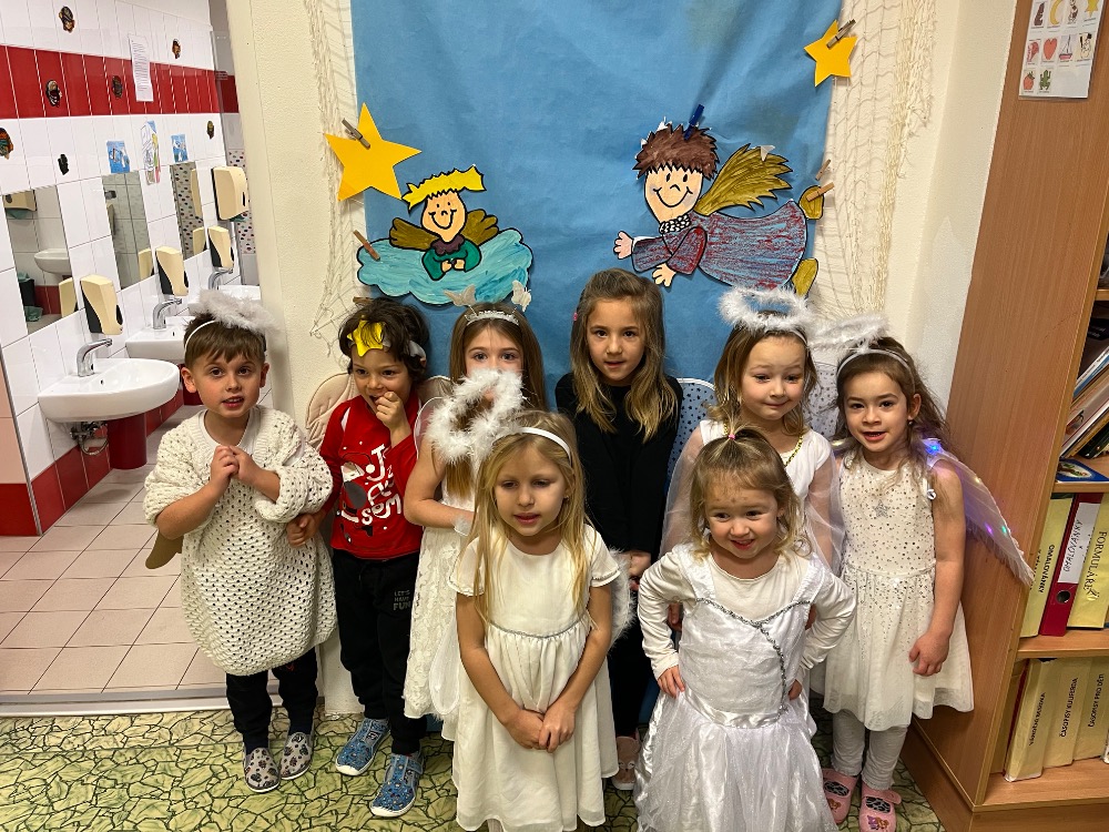 V pátek 5. ledna 2025 jsme přivítali v mateřské škole Mikuláše, anděla a dva čerty. Děti jim přednesli říkanku nebo zazpívali písničku a dostali od andílka balíček.