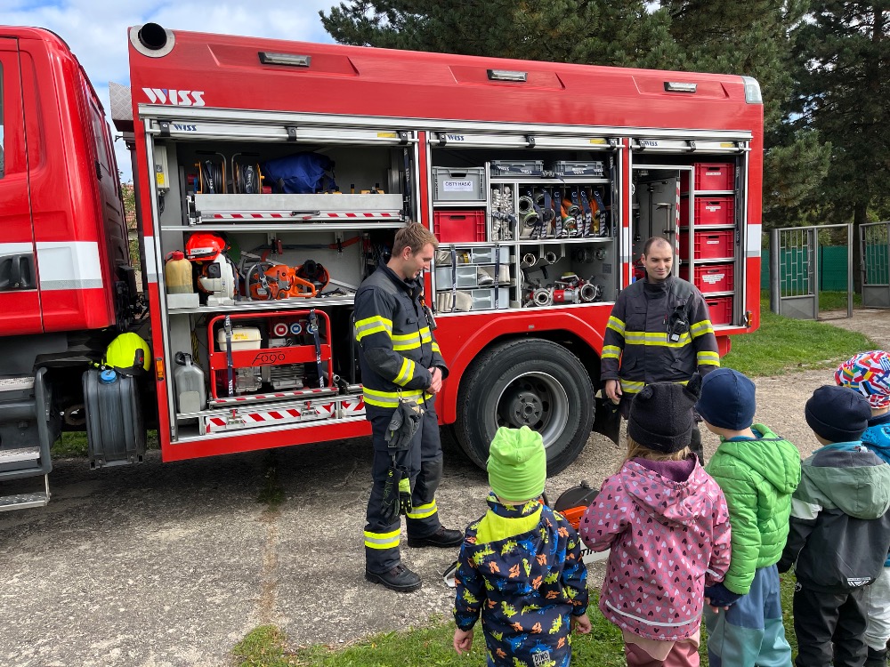 Ve středu 8. října 2025 nás navštívili členové HZS Rosice. Děti se seznámily s technikou hasičů a ukázkami jejich práce.