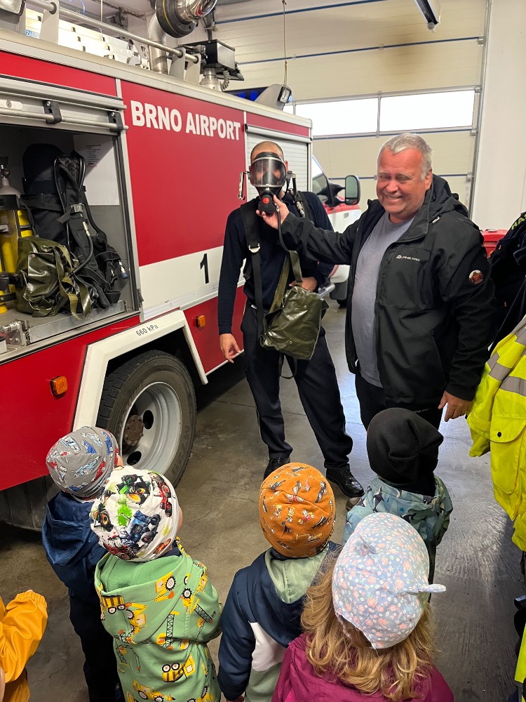 Dne 25. září 2025 děti navštívily letiště v Brně, podívaly se na odlety a přílety letadel a seznámily se s prací hasičů brněnského letiště.